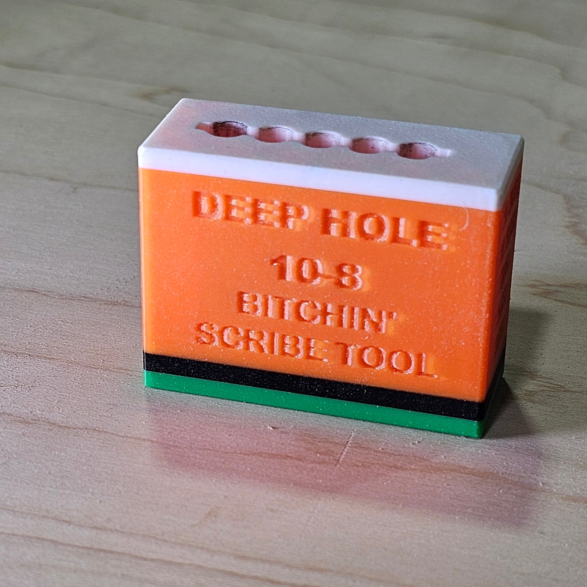 - It holds a DEEP HOLE pencil (specifically PICA brand) securely at a specific distance to make it easy to scribe